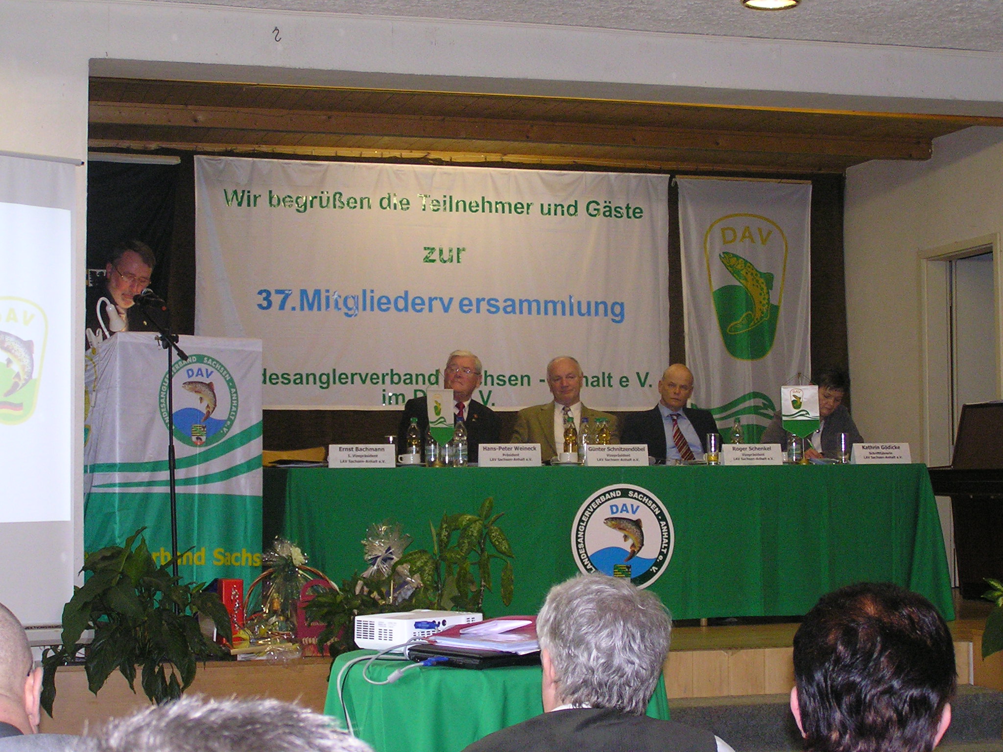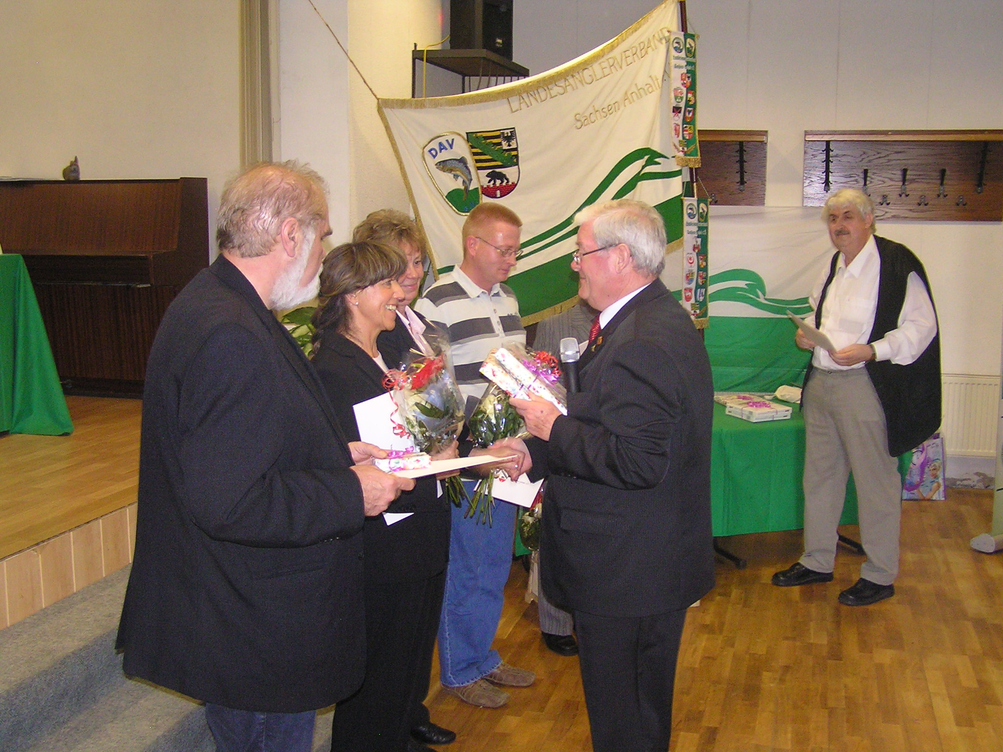 Emotionale Neuwahl des Präsidiums des LAV Sachsen-Anhalt e.V. Am 17.03.2012 fand in Brambach / Elbterrassen die 37. Mitgliederversammlung des LAV Sachsen-Anhalt e.V. statt, verbunden mit der Neuwahl des Präsidiums, der Kassenprüfer und des Schiedsausschusses. Von Beginn an war die Veranstaltung emotional geprägt, denn nach über 20 Jahren verlässt Hans-Peter Weineck als Präsident auf eigenen Wunsch das Präsidium. Hans-Peter Weineck hat in seiner langjährigen Tätigkeit gemeinsam mit dem jeweiligen Präsidium den LAV gegründet und von Beginn an mit aufgebaut. Seine Arbeit haben viele Höhen, aber auch Tiefen begleitet, stets aber trat er mit viel Sachkunde für „seine“ Angler und den LAV Sachsen-Anhalt e.V. ein. Viele Gefährten aus Politik, Wirtschaft und den Sportverbänden national & international haben seinen Weg begleitet, und so war es nicht verwunderlich, dass unter den Gästen der Mitgliederversammlung neben den Freunden aus dem PZW Katowice, auch die Präsidenten der DAV Landesverbände aus Sachsen, Brandenburg, VANT, aber auch vom VDSF LAV Sachsen-Anhalt e.V. waren. Weiterhin besuchten aus dem Präsidium des DAV der Präsident, der Vizepräsident für Jugend & Sport und der Vizepräsident für Finanzen sowie der Landesfischereiverband, der Präsident der Wasserschutzpolizeidirektion Magdeburg und aus dem Ministerium für Landwirtschaft und Umwelt des Landes Sachsen-Anhalt der Minister und der Fischereireferent die Mitgliederversammlung. In bewegenden Grußworten dankte man Hans-Peter Weineck für sein langjähriges Wirken im Sinne des DAV und der Anglerschaft und verlieh ihm hochrangige Auszeichnungen, darunter die Ehrenpräsidentschaft des LAV Sachsen-Anhalt e.V. In seinem letzten Rechenschaftsbericht präsentierte Hans-Peter Weineck dann neben der Arbeit aus der letzten Legislaturperiode auch noch einmal die Erfolge unseres LAV der letzten 20 Jahre. Mit einer beeindruckenden und sehr emotional vorgetragenen Laudatio durch den 1. Vizepräsidenten für Umwelt- und Naturschutz, Ernst Bachmann, wurde Hans-Peter Weineck dann verabschiedet, umrahmt von Geschenken aus den Referaten und Vereinen. Das überragende Schaffen von Hans-Peter Weineck stand auf dieser 37. Mitgliederversammlung absolut berechtigt im Vordergrund. Dennoch soll nicht unerwähnt bleiben, dass auch weitere Mitglieder des Präsidiums ihr Wirken an dieser Stelle beendet haben. So haben der langjährige Vizepräsident für Gewässerwirtschaft, Claus Brühl, und der Referent für Öffentlichkeitsarbeit, Frank Gabriel, nicht wieder kandidiert. Ferner haben in der Schiedskommission und in der Kassenprüfung Joachim Fuchs, H.-Georg Fiedler und Siegfried Fiedler ihre Arbeit beendet. Auch all diesen Mitgliedern wurde für ihr langes Wirken in den einzelnen Funktionen gedankt. Im anschließenden Wahlakt wurden das neue Präsidium, der Schiedsausschuss und die Kassenprüfer wie folgt gewählt. Geschäftsführendes Präsidium des LAV Sachsen-Anhalt e.V.: Präsident Roger Schenkel (Hallescher AV e.V.) 1. Vizepräsident für Umwelt- und Naturschutz Ernst Bachmann (KAV Saalkreis e.V.) Vizepräsident für Finanzen Matthias Deutsch (KAV Merseburg e.V.) Vizepräsident für Gewässerwirtschaft Harald Rohr (Magdeburger AV e.V.) Vizepräsident für Jugend und Sport Günter Schnitzendöbel (FV Elbe-Saale Winkel e.V.) Vorsitzender der Verbandsjugend Frank Preetz (AV Eichenweiler Magdeburg e.V.) Schriftführer Kathrin Gödicke (Hallescher AV e.V.) Referenten des Präsidiums: Referent für Gewässerfragen Peter Eschke (AV Bitterfeld e.V.) Referent für Umwelt- und Naturschutz Ekhard Pefestorff (KAV Osterburg e.V.) Referent für Angeln Bernd Bormann (AV Nienburg e.V.) Referent für Castingsport Jens Spindler (KAV Haldensleben e.V.) Referent für Meeresangeln Uwe Potschka (KAV Wittenberg e.V.) Referent für Öffentlichkeitsarbeit Bernd Hauschild (AC 66 Köthen e.V.) Referent für Fischereiaufsicht Ralf Möller (Hallescher AV e.V.) Schiedsausschuss: Wolfgang Thiele Hallescher AV e.V. Gerd Hauser KAV Weißenfels e.V. Reiner Leppek KAV Gardelegen e.V. Hilmar Knoblauch KAV Merseburg e.V. Hans-Jürgen Krätzig AV Klötze e.V. Kassenprüfer: Dieter Frömter Hallescher AV e.V. Dietmar Weese KAV Merseburg e.V. Sebastian Beier FV Rögatz e.V. Nach der Wahl ließ es sich Hans-Peter Weineck nicht nehmen, sich seinerseits bei seinen Mitarbeitern im LAV Sachsen-Anhalt e.V. für die jahrelange erfolgreiche Zusammenarbeit zu bedanken. Mit einer Ehrenurkunde bedankte er sich bei Monika Stein, Renate Hölzer, Uwe Tempel, Bernd Manneck, Marcus Gaumer und Axel Ritzmann. Wir als AV Eichenweiler haben es uns nicht nehmen lassen, uns mit einem Präsentkorb im Namen unserem Vereins bei Hans-Peter Weineck zu bedanken. In meinem Wirken für die Verbandsjugend im geschäftsführenden Präsidium habe ich ihn stets als loyalen aber auch streitbaren Partner im Sinne einer erfolgreichen Jugend- und Sportarbeit erlebt, welcher der Jugendgewinnung und –förderung stets oberste Priorität eingeräumt hat. Wir wünschen ihm für seinen „Ruhestand“ alles Gute und wissen um seine Bereitschaft, uns weiterhin mit Rat und Tat zur Seite zu stehen. Im folgenden Abschlusswort des neu gewählten Präsidenten Roger Schenkel bekräftigte dieser, die erfolgreiche Arbeit des LAV Sachsen-Anhalt und das Wirken von Hans-Peter Weineck fortsetzen zu wollen. Was gut funktioniert, soll und muss fortgeführt werden - den neuen Herausforderungen wird man sich im Interesse der Angler stellen. Frank Preetz & Bernd-Alfred Hoffmann