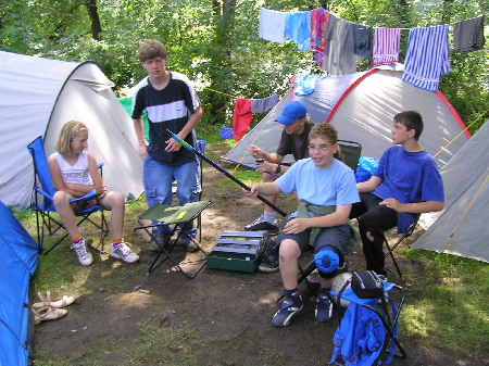 Gemeinsam verbringt man bei Sport und Spiel, Fachvorträgen über das waidgerechte Angeln, dem Bau von Nisthilfen, Angeln oder Baden die Zeit. Zwei Grillabende mit Spanferkel und Steaks, sowie ein großes Sportfest krönen die Woche. Bei einer so regen Teilnahme im Sommer ist es natürlich selbstverständlich, dass auch die Verbandsjugendtreffen im Meeresangeln, die regelmäßig in Kiel Laboe stattfinden, gut besucht sind. Durch die Anreise mit dem Reisebus ist die Teilnehmerzahl hier jedoch begrenzt. An 2 Tagen fährt man mit einem Kutter auf die Deutsche Bucht um hier den Dorschen nachzustellen. Übernachtet wird in einer Jugendherberge, wo auch die Verpflegung erfolgt. Die Bilder sollen einen kleinen Eindruck von den Treffen in Brachwitz und Kiel Laboe 2005 vermitteln. |